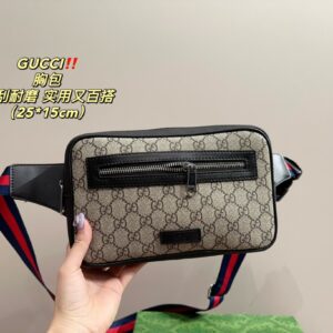 尺寸25.15 酷奇 胸包 GUCCI 男生日常休閒搭配的理想選擇~ 實用又百搭,小小的身體大大的空間 非常適合放隨身物品~ 布料耐磨耐刮蹭,適合男生大大咧嘴的個性~