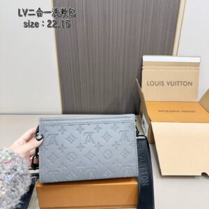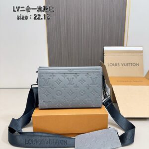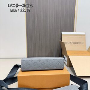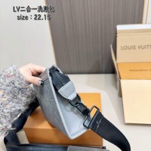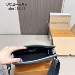 配飛機盒折疊盒子 Lv男士二合一盥洗包 高端對版品質 Alpha Wearable 錢夾融合Monogram Eclipse 帆布和皮革飾邊,可容納手機和小號錢夾。廣口設計和側邊風琴結構方便取放,可調節肩帶實現多種背攜方式。尺寸:22.15